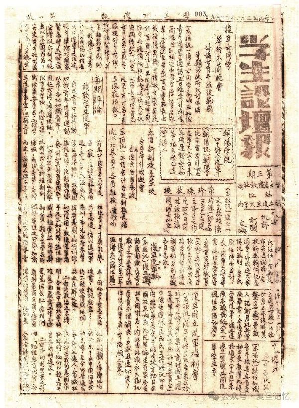 复旦大学的学生在“九一八”事变后就自发组建义勇军,“计得三大队……都千三百余人”,在校内刻苦训练。1932年寒假期间,义勇军特务连某排学生在军训教官郭坚的带领下前往大场地区,在十九路军翁照垣旅长麾下开展实地训练,并参与了“一·二八”淞沪抗战。“觉壮志得伸,转以苦为乐”,道尽彼时复旦人矢志报国的激昂情怀。