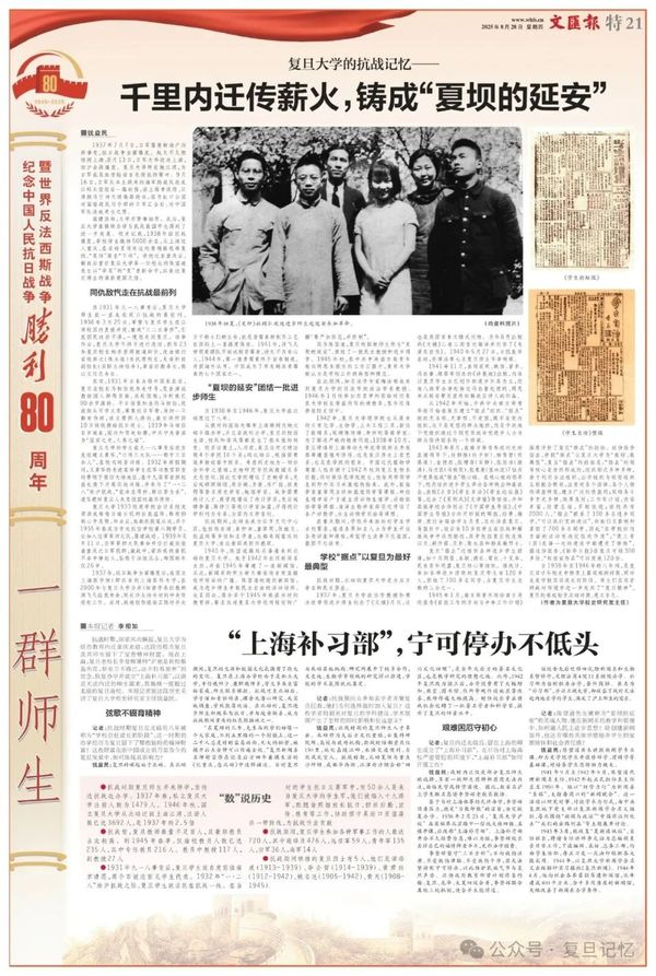 因为陈望道,复旦校园被师生称为“夏坝的延安”,团结了一批民主教授和进步同学。1945年初,在中共中央南方局青年组向周恩来提交的工作汇报中,复旦大学被认为是学校工作的典型和模范。